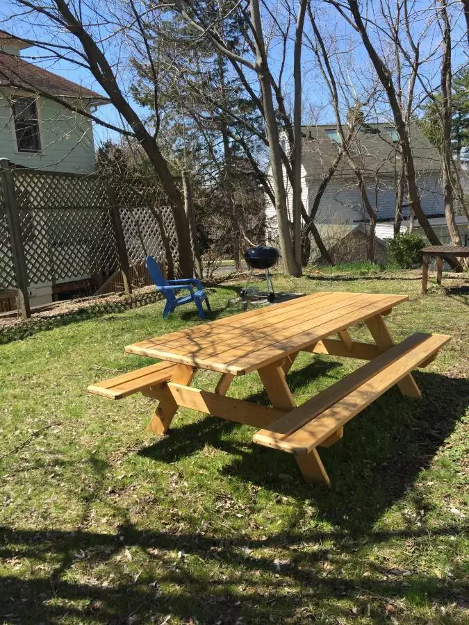 Quiet academic neighborhood with outdoor space with lovely front porch, picnic table, barbecue in backyard.